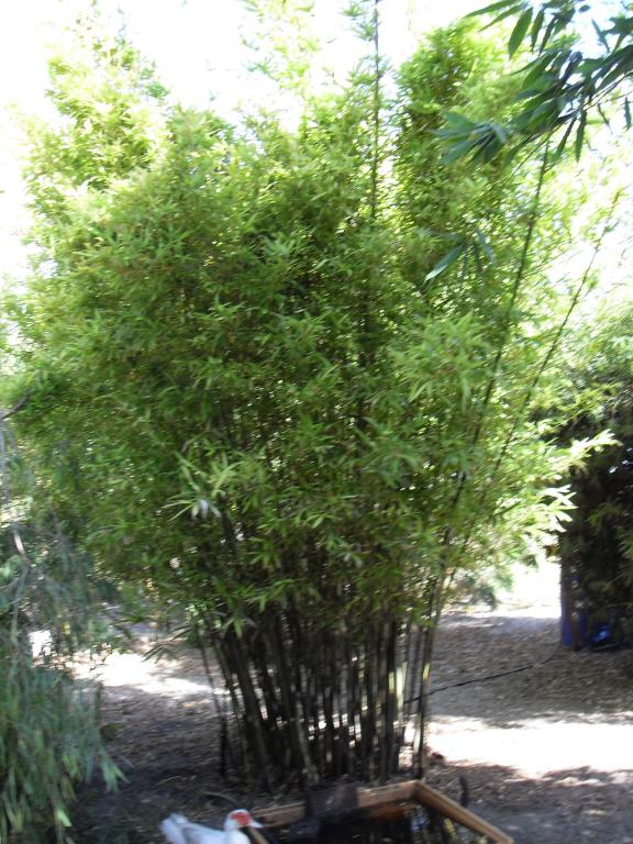 Oxeye Bamboo (Bambusa eutuldoides ‘Basistriata’) growing in the chook yard