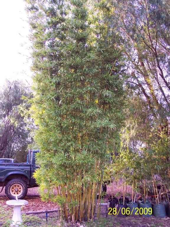 Previous Image Next Image Slender Weavers Bamboo (Bambusa textilis gracilis) – 6m tall after 4 years alongside a sandy driveway